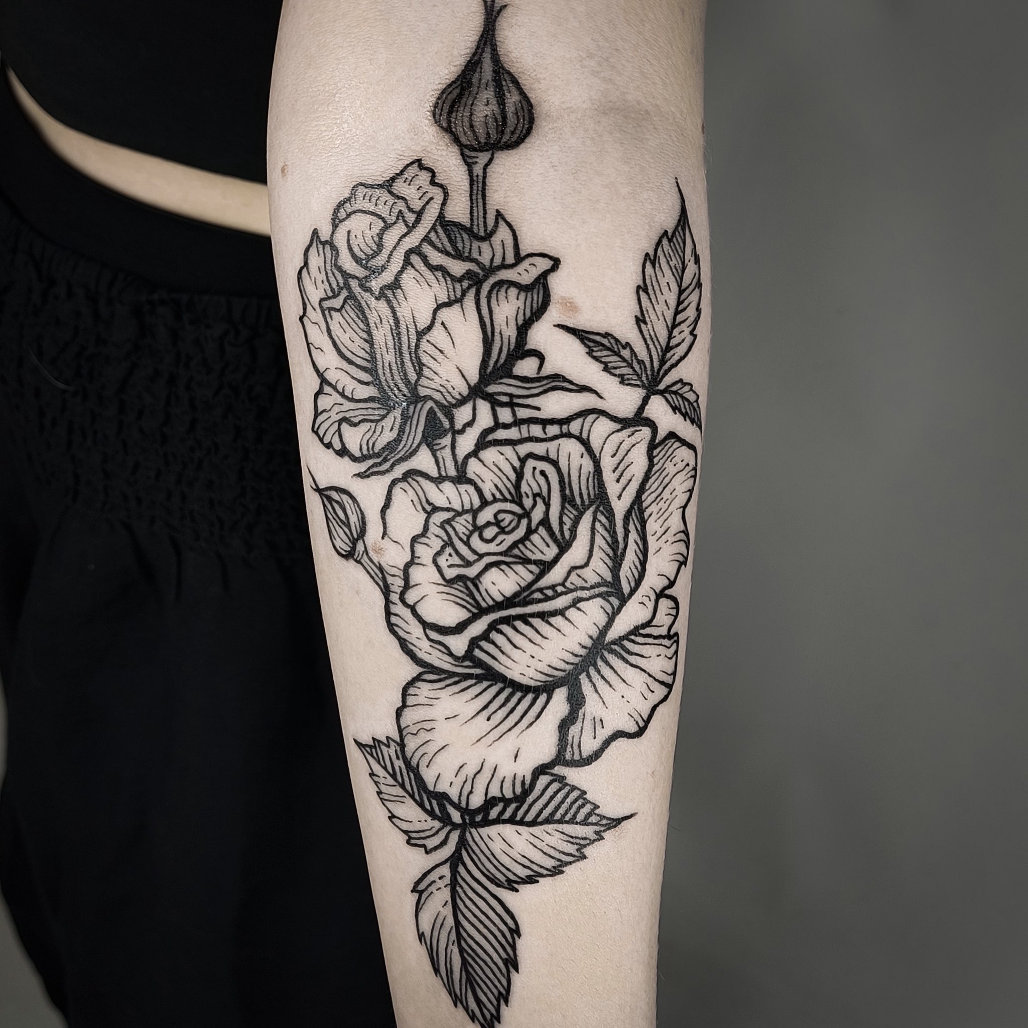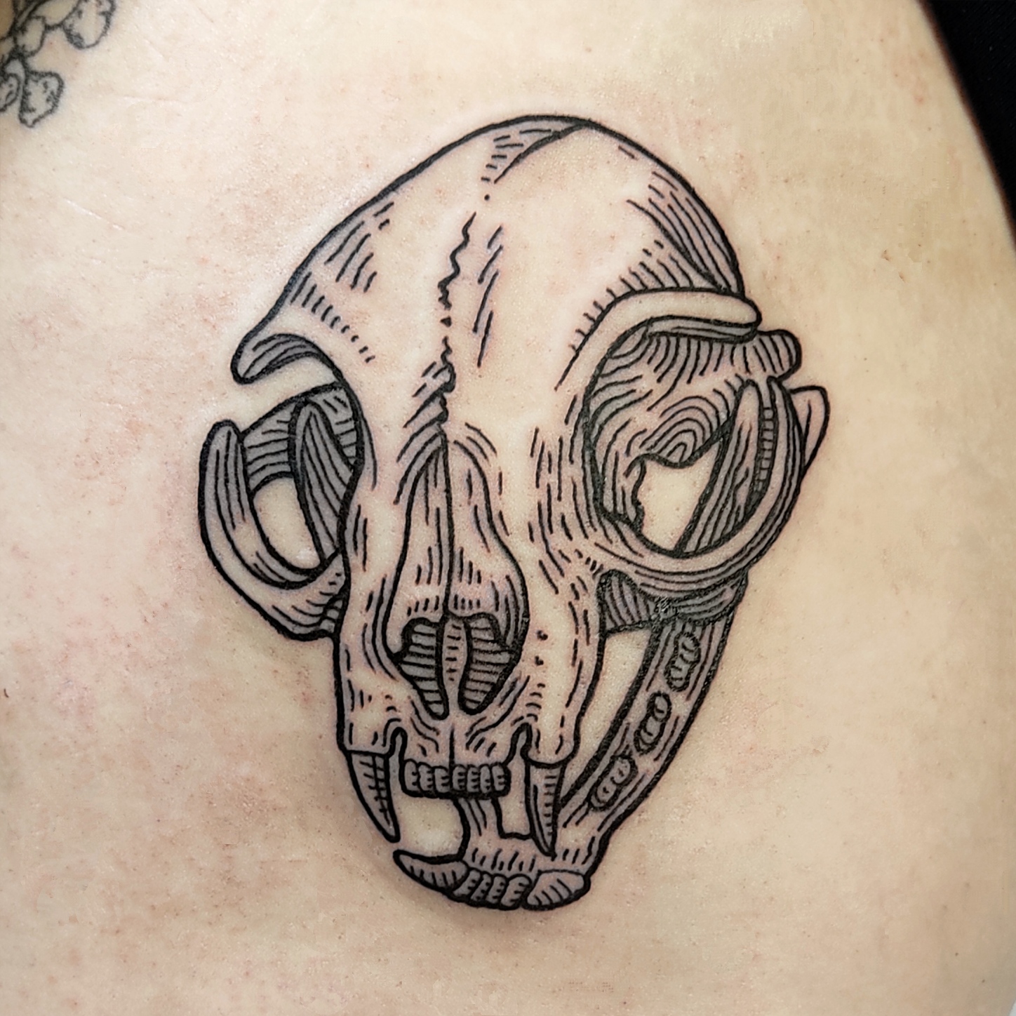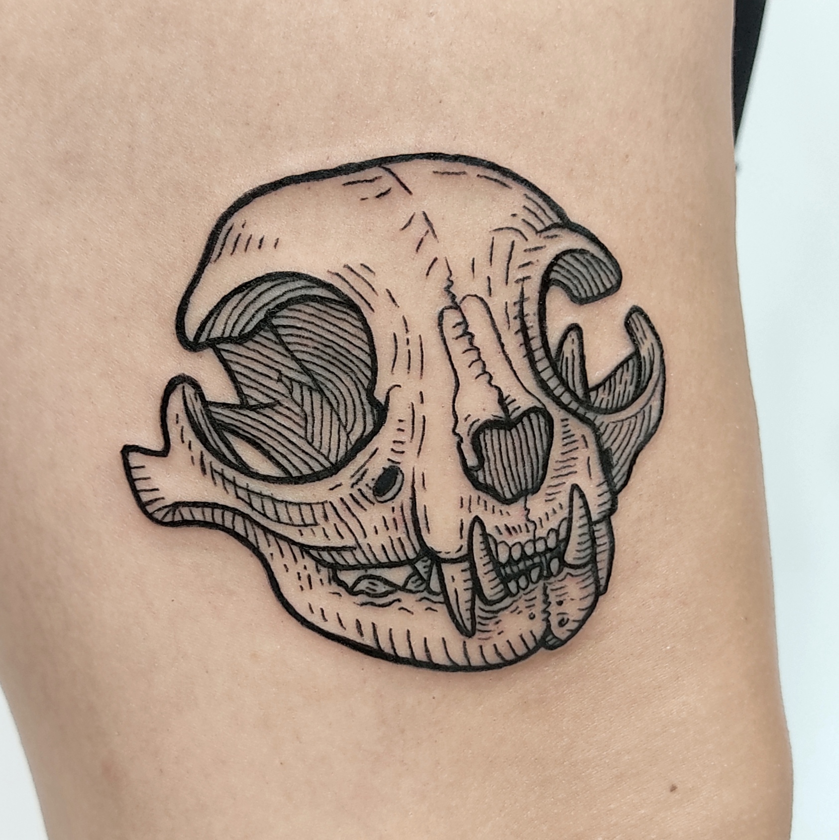 Najlepiej czuje się w graficznych tatuażach, w których jest wyrazista kreska. Uwielbia także styl rycinowy oraz oldschool.