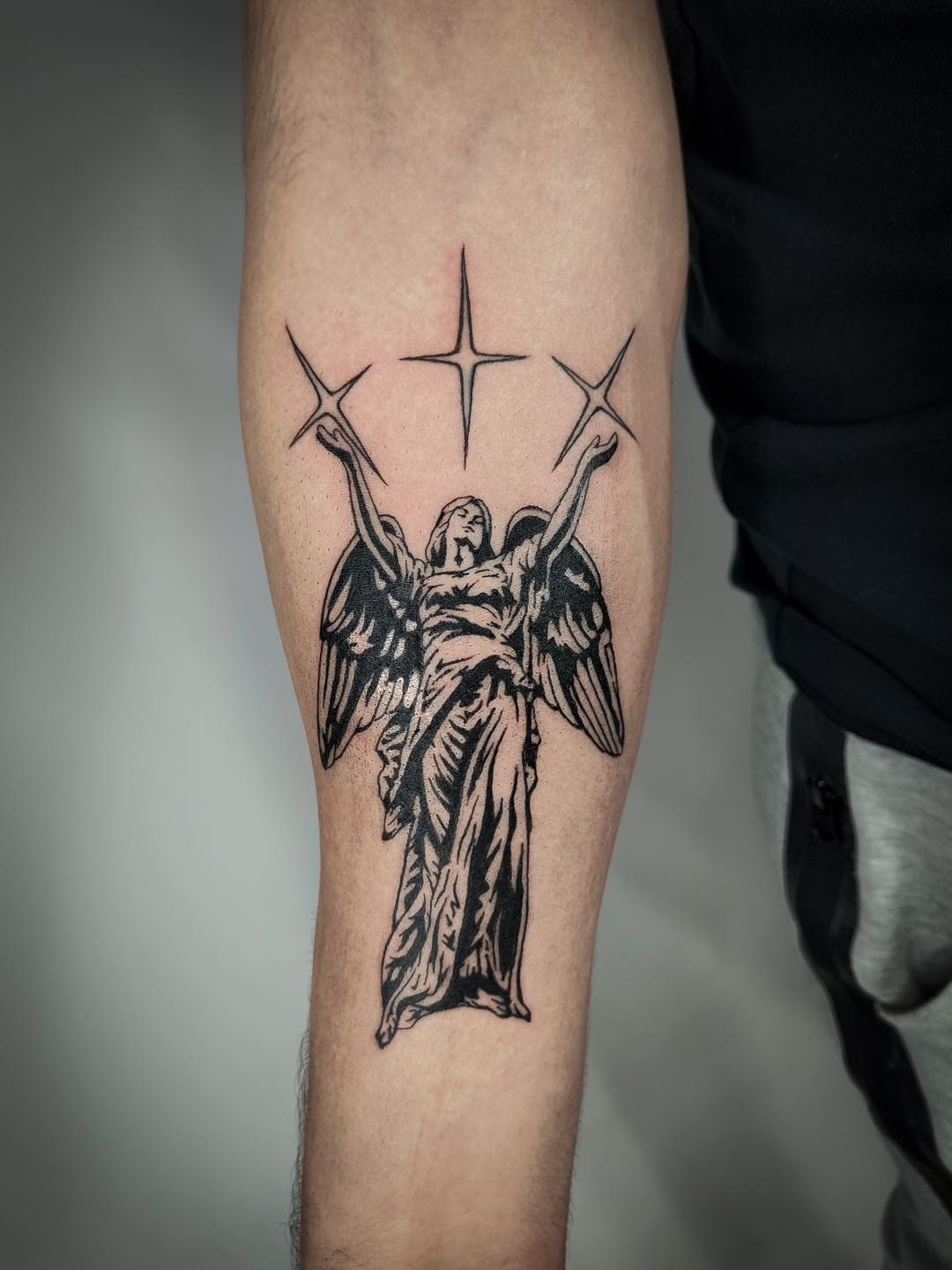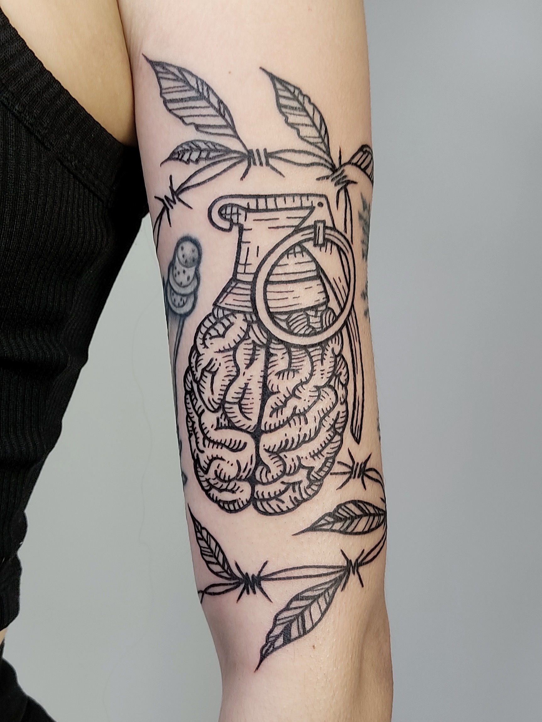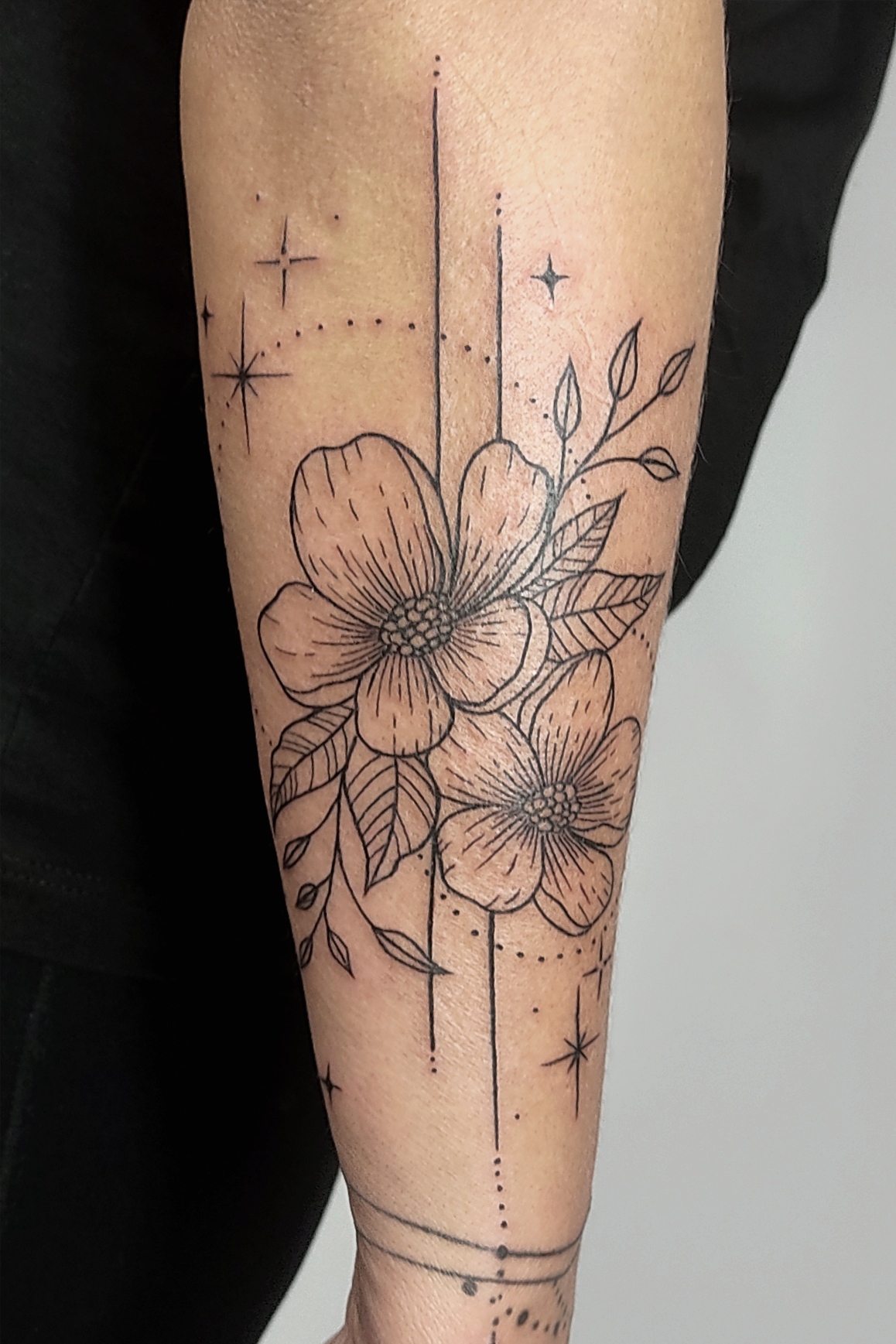 Najlepiej czuje się w graficznych tatuażach, w których jest wyrazista kreska. Uwielbia także styl rycinowy oraz oldschool.